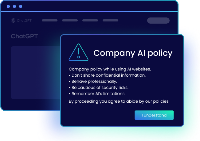 Introduce new AI capabilities to your teams right in the flow of work and minimize the risks by ensuring secure and effective adoption across your organization.